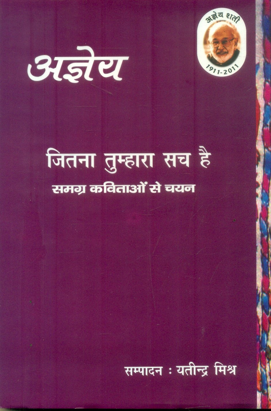 अज्ञेय काव्य में वाक्यों की संक्षिप्ति, मौन की मुखर अभिव्यक्ति, जीवन और मूल्यों को लेकर शाश्वत से प्रश्न की जद्दोजहद, मृत्यु और मृत्यु से इतर समाज से संवाद, प्रकृति के लगभग सभी प्रत्ययों से बेहिचक आत्मीय संलाप, समाज में अध्यात्म की गुंजाइश पर बहस तथा समय के साथ न जाने कितने तरीकों से काल चिन्तन-यह सब एक कवि अज्ञेय के वैचारिकता के आँगन के विमर्शपरक विषय ही नहीं हैं बल्कि वह उनकी पूरी रचना यात्रा में पूरी ऊष्मा के साथ उद्भासित हो सके हैं। जितना तुम्हारा सच है में चयनित अज्ञेय की सी महत्त्वपूर्ण कविताओं के पुनर्पाठ से हम आसानी से यह लक्ष्य कर सकते हैं कि उन्होंने कई संस्कृतियों और उसके साहित्य के अवगाहन व मैत्री से खुद अपनी संस्कृति और उसके रूप, रंग को समझने की एक भारतीय दृष्टि हमें सौंपी है। यदि हम उन्हीं के शब्दों में अपना स्वर मिलाकर कहें, तो ‘जितना तुम्हारा सच है’ की यह सौ कविताएँ अज्ञेय की विचार सम्पदा के आँगन के इस पार कृतज्ञतापूर्वक पा लागन है।”